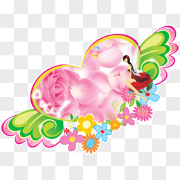 手绘彩色翅膀爱心花朵
