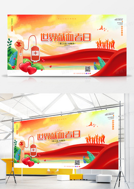 红色简约世界献血者日公益宣传展板