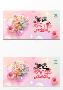 浪漫的爱心花束剪纸直边框情人节边框免扣元素