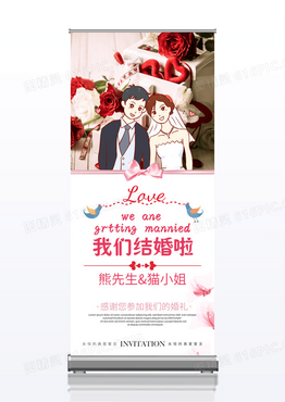 白粉色浪漫婚礼玫瑰花小清新我们结婚吧婚庆婚礼展架易拉宝海报