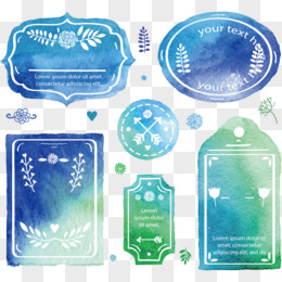 蓝绿色水彩婚礼标签