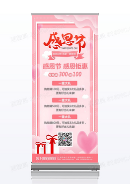 粉色爱心丝带背景感恩节商场优惠促销展架感恩节展架易拉宝