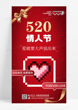 520像素风爱心情人节像素风手机宣传海报
