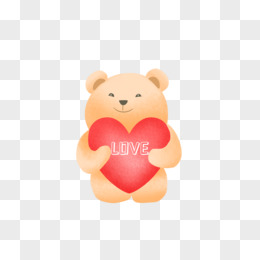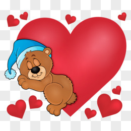 卡通手绘小熊抱着爱心睡觉免抠元素