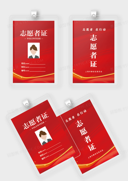 红金色简洁志愿者证爱心公益志愿者工作证