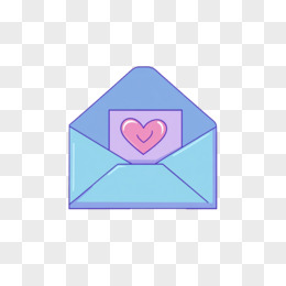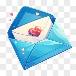 卡通打开的蓝色信封和爱心免抠元素