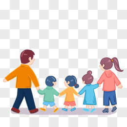 手绘一家人温馨温暖的背影场景免抠元素