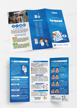 蓝色清新大气卡通爱眼护眼背景保护眼睛预防近视三折页