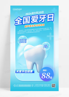 蓝色全国爱牙日爱护牙齿牙齿健康口腔活动促销海报