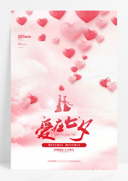 爱在七夕海报背景心形元素 七夕情人节 七夕送好礼 中国情人节 七夕促销 礼惠七夕 中国风
