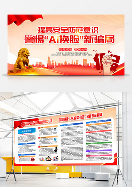 大气红色时尚风格预防防范AI诈骗新型诈骗双面展板宣传栏