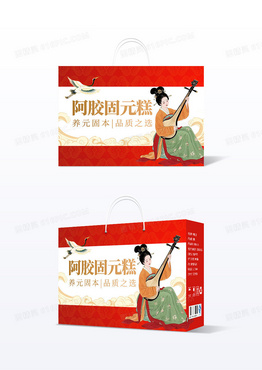 红色简约国潮风阿胶固元糕包装盒