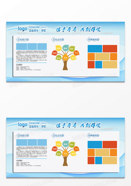 蓝色照片展板海报企业简介企业文化经典案例携手并进共创辉煌企业文化墙展板设计