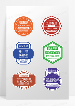 彩色几何形状开锁安全开锁换锁不干胶设计