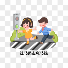 一组手绘交通安全合集套图之过马路走斑马线素材