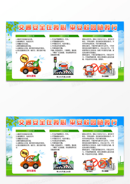 绿色城市背景交通插画平安校园交通安全知识展板设计