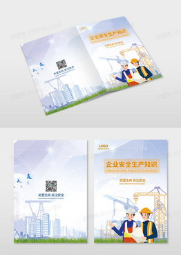 蓝色卡通风格安全生产知识手册封面安全生产画册手册宣传封面