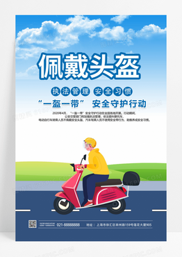 交通安全一盔一带佩戴头盔安全守护海报设计