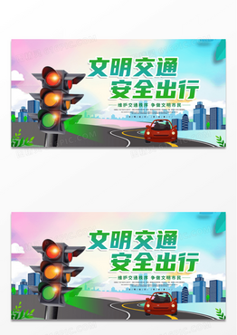 一组卡通扁平文明行车交通安全教育手举牌合集素材