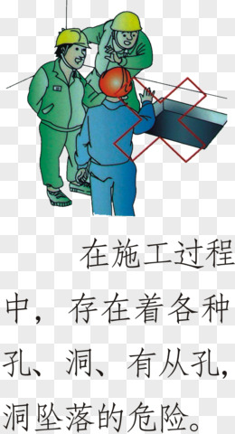 在施工过程 中,存在着各种 孔、洞、有从孔, 洞坠落的危险。