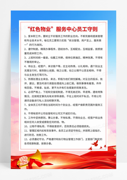 红色丝绸物业服务中心员工守则红色物业海报展板