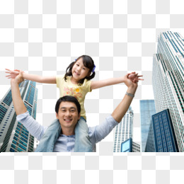 手绘插画风爸爸抱着宝宝亲子开心出行游玩元素