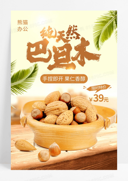 简约清新暖色大气纯天然巴旦木坚果美食海报巴旦木海报