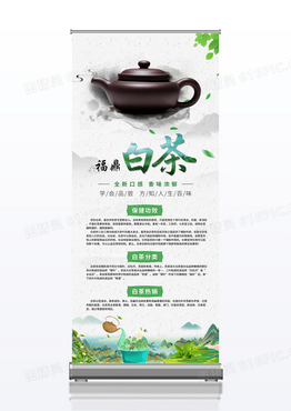 简约中国风福鼎白茶茶叶产品易拉宝展架