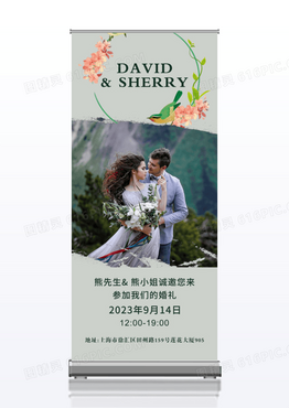 韩风浅绿色森系时尚简约小清新婚庆展架易拉宝
