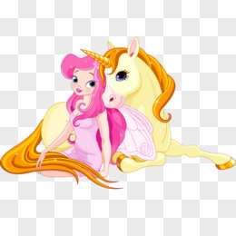 手绘彩色少女独角兽元素