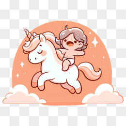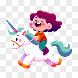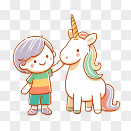 可爱卡通独角兽和小朋友插画免抠元素