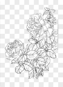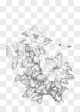 手绘国潮风格盛开的牡丹花与枝头鸟儿元素