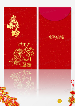 剪纸风卡通老虎提灯笼拜大年免抠元素