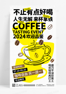 白色简约不止好喝人生无解来杯拿铁咖啡手机宣传海报