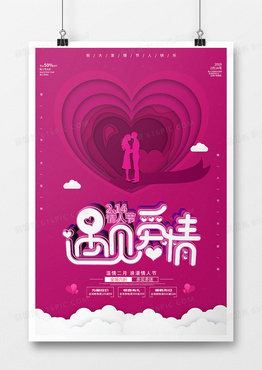 剪纸风格遇见爱情促销情人节促销立体字海报