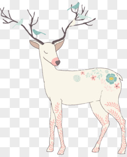 卡通手绘梦幻白色麋鹿