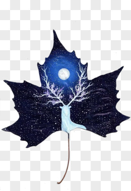 清新树叶画夜晚白色驯鹿