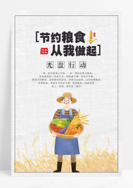 简约白色简约米饭光盘行动节约粮食拒绝浪费公益海报宣传