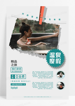 白色简约风温泉度假促销温泉度假海报