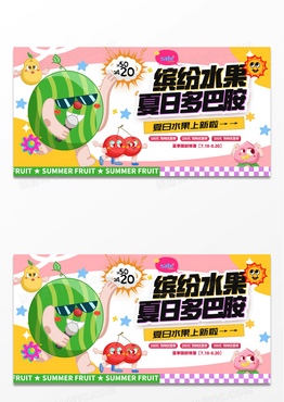 白色涂鸦风格缤纷水果水果宣传促销展板