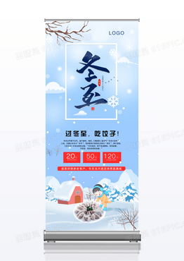白色卡通冬至主题的优惠活动展架冬至x展架