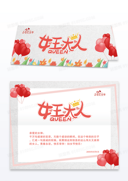 白色心形简约38女神节三八妇女节祝福贺卡模版
