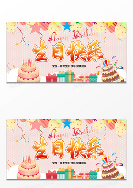 水彩简约时尚儿童生日宴生日快乐百岁宴展板设计