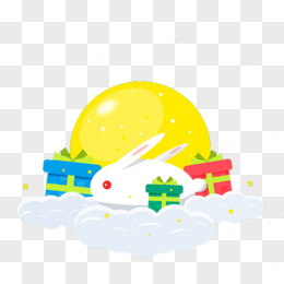 小白兔拟人动物围坐在一起吃月饼免抠元素