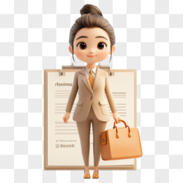 3D插画一个白西装女人站在一个巨大简历前免抠元素