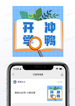 翻书蓝色网格开学季插画简约开学冲鸭公众号小图