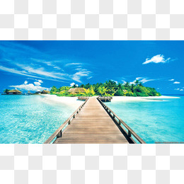 蓝天白云椰林海水珊瑚