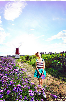 蓝天白云风车美女