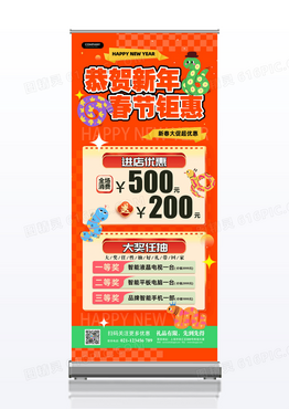 橘色喜庆2025蛇年新年春节促销活动展架易拉宝