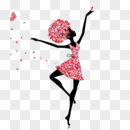 卡通风红色短裙芭蕾舞者飘带剪影免抠元素